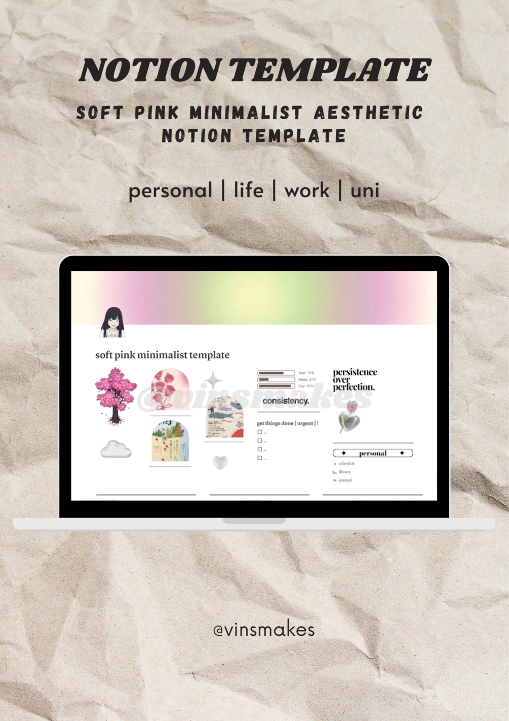 Embrace the soft pink aesthetic while staying organized and productive with this minimalist Notion template. It's the perfect digital canvas for individuals who appreciate the beauty of simplicity and want to bring an element of elegance to their daily work and life.